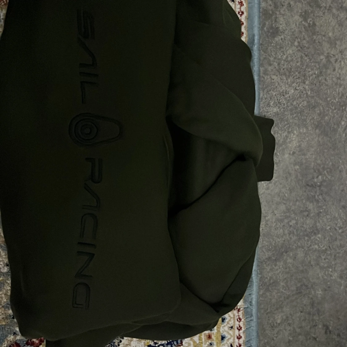 Säljer en mörkgrön hoodie från Sail Racing med en stilren design. Tröjan har en klassisk huva och är perfekt för kyligare dagar. Den är i storlek S och har en diskret logga på bröstet.