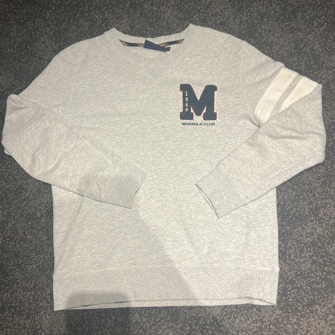 En grå Morris tröja mycket bra kvalite och väldigt snygg. Pris kan diskuteras.