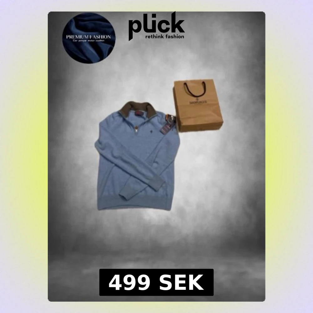 Snygg ljusblå tröja från Morris med half zip och brunt ribbat krage. Tröjan kommer med original påsa och tags medföljer! Tröjan ör i storlek xs och kommer sitta dunder på en grabb som är 160-165! Inga defekter alls på tröjan ! Pris kan diskuteras