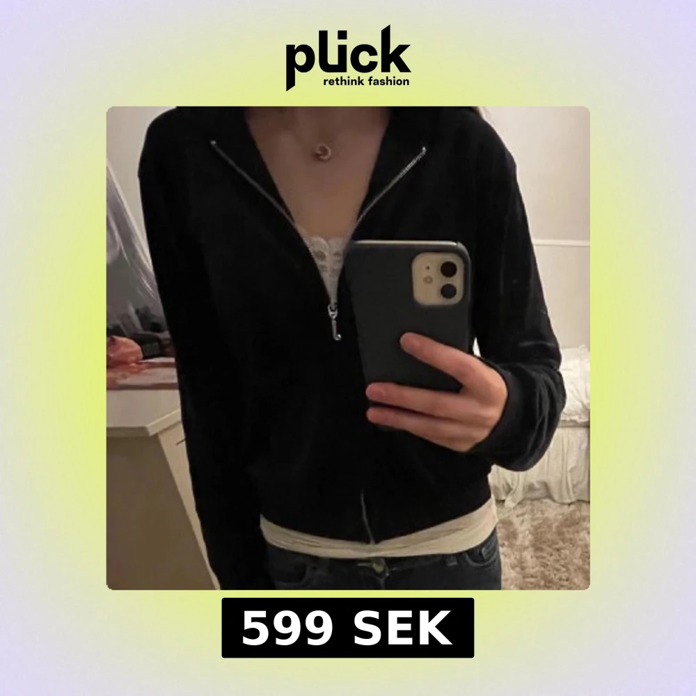 Mörkblå velourjacka från Juicy Couture med huva och dragkedja framtill. Aldrig använd och i extremt bra skick i storlek 15/16 men passar yngre🩷
