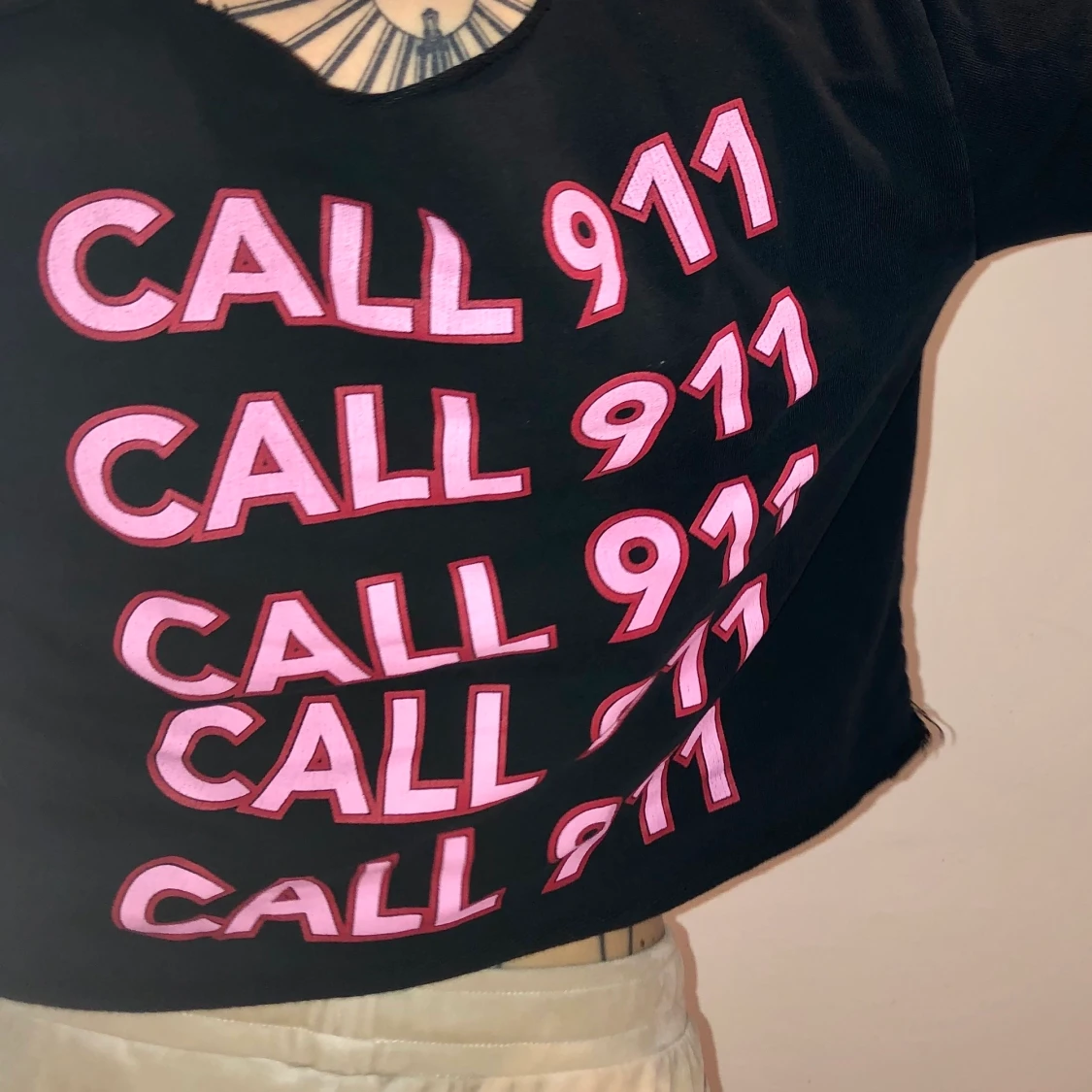 Köpt på NA-KD, klippt till den själv. Rosa text. Säljer av massa kläder nu pga flytt så passa på medan chansen finns och kolla gärna in mina andra annonser med! 🌸