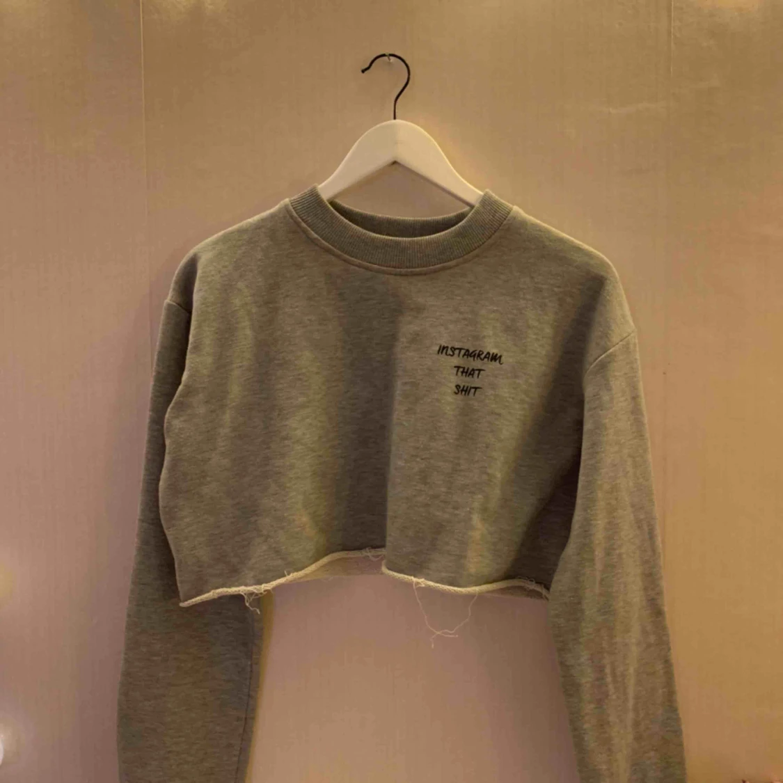 Väldigt croppad tröja från NA-KD. Tröjan slutar en bit ovanför naveln men täcker BH:n om man inte lyfter på armarna. Jag kan mötas upp i Borås, eventuellt Göteborg, annars står köparen för frakten.