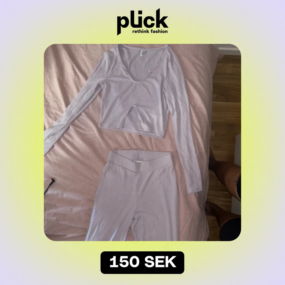 Ett jätte fint set från Nelly helt oanvänt pastell lila, storlek S, med en liten slit vid foten & på magen på toppen . 150 kr för båda.