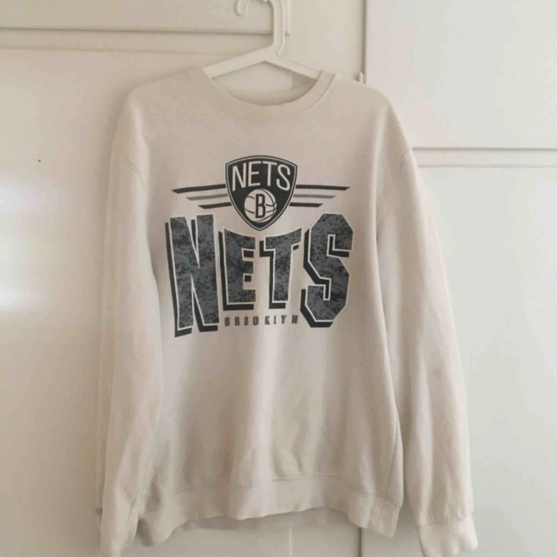 Snygg collegetröja från Mitchell & Ness i vitt med tryck NETS.