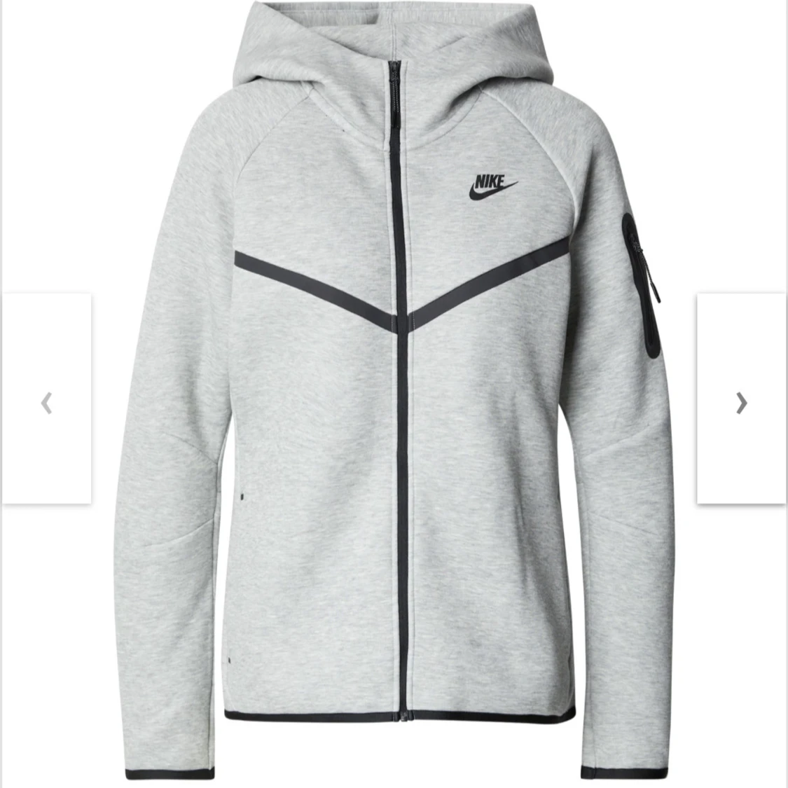 Snygg ljusgrå hoodiejacka från Nike med svart logga på bröstet och svarta detaljer längs dragkedjan och ärmen. Jackan har huva, hel dragkedja och lång ärm. Storlek 147-158 passar dig som bär storlek XS.