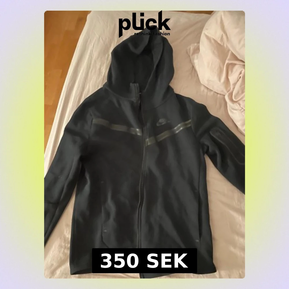 Är svart med detaljer på framsidan och märket Nike, har också en fika på sidan av armen