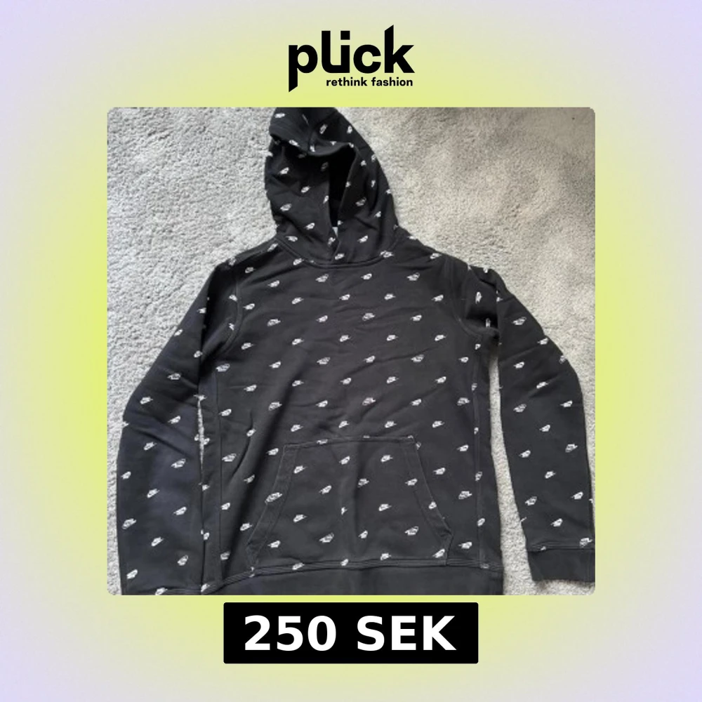 Säljer en svart hoodie från Nike med all over print. Tröjan har känguruficka.