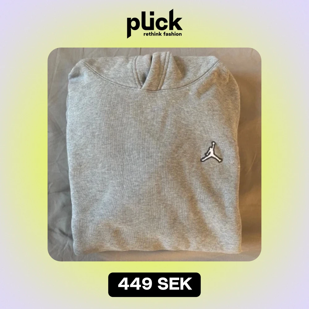 En superfin fleecehuvtröja med en broderad jumpman-logga på bröstet, mycket bra skick och nypris 849 från nikes hemsida