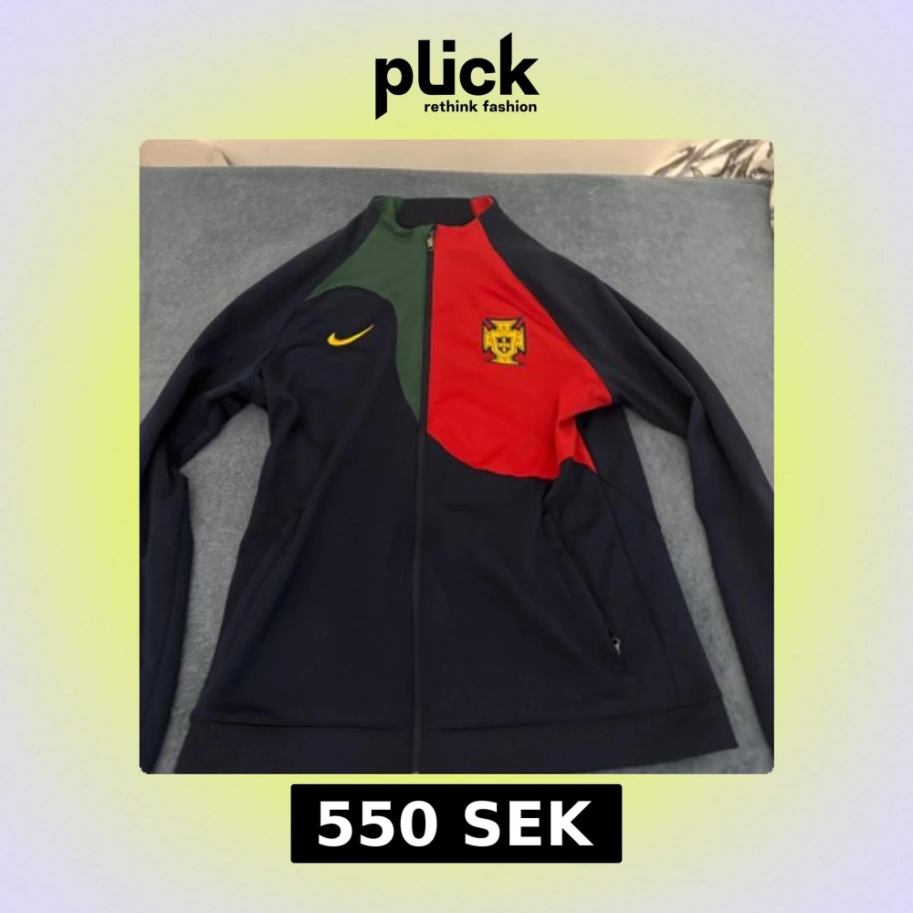 Säljer en Nike Portugal fotbollströja med dragkedja. Tröjan är långärmad och har färgblock i mörkblått, rött och grönt med Portugals landslagsemblem på bröstet. Slim fit-modell med gul Nike-logga. Kan diskutera pris! (Äkta)