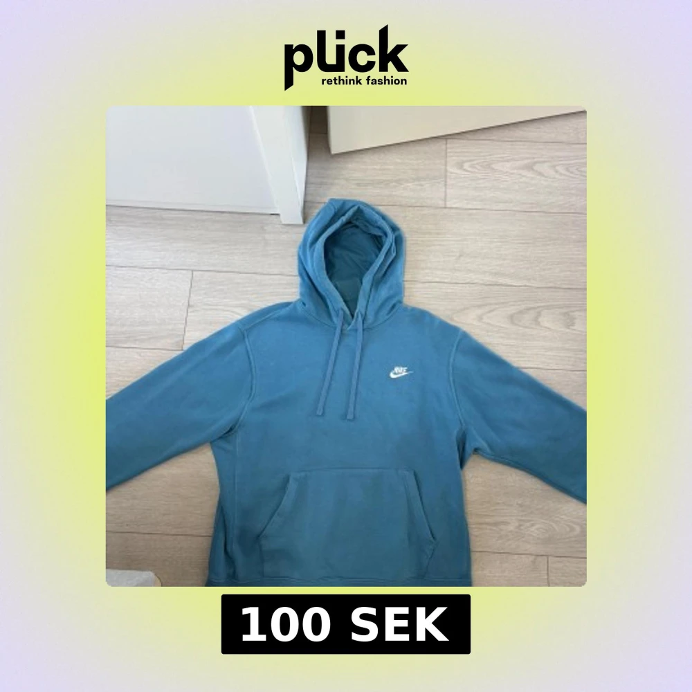 Blå nike hoodie i storlek M. Använd fåtal gånger, sitter fint och lite löst.
