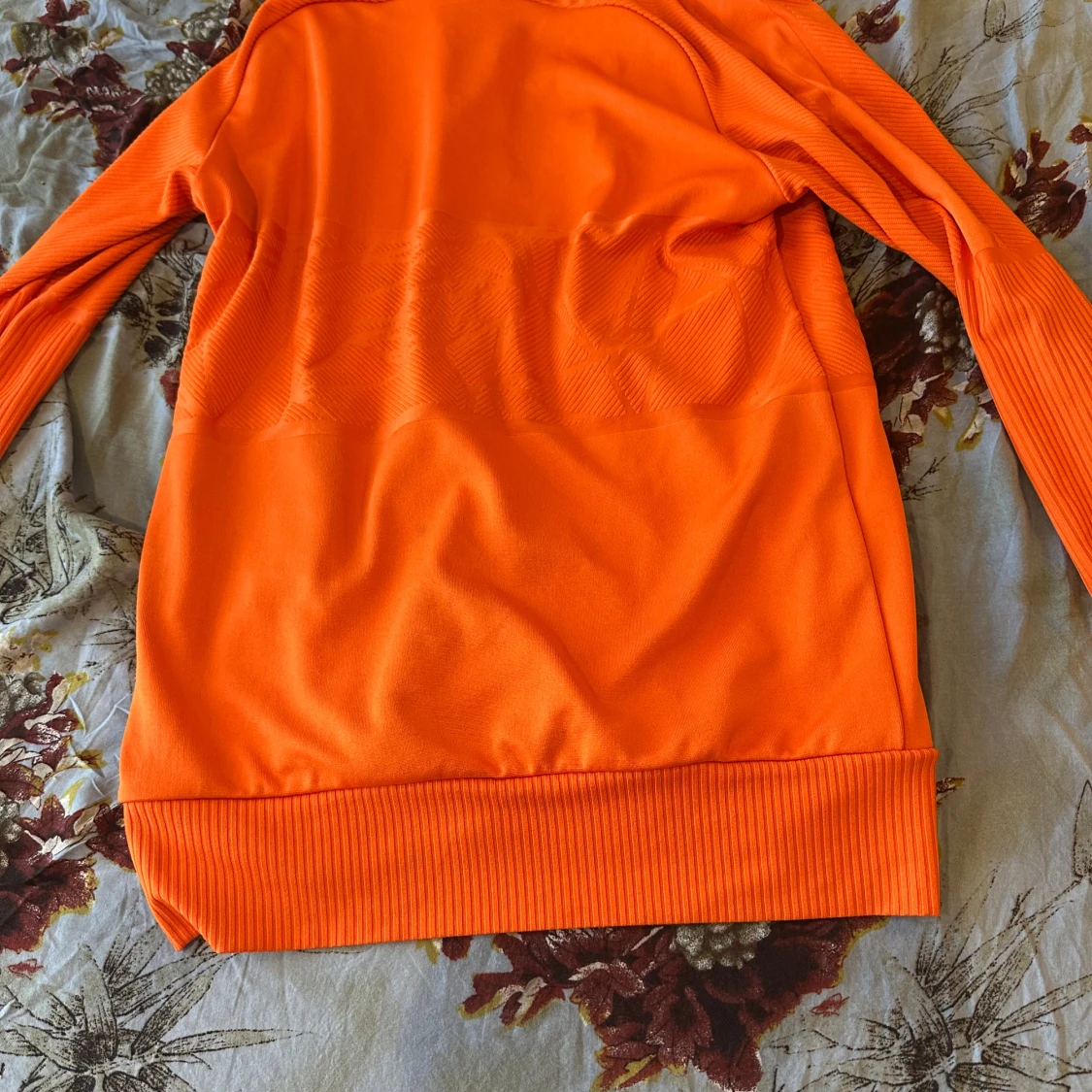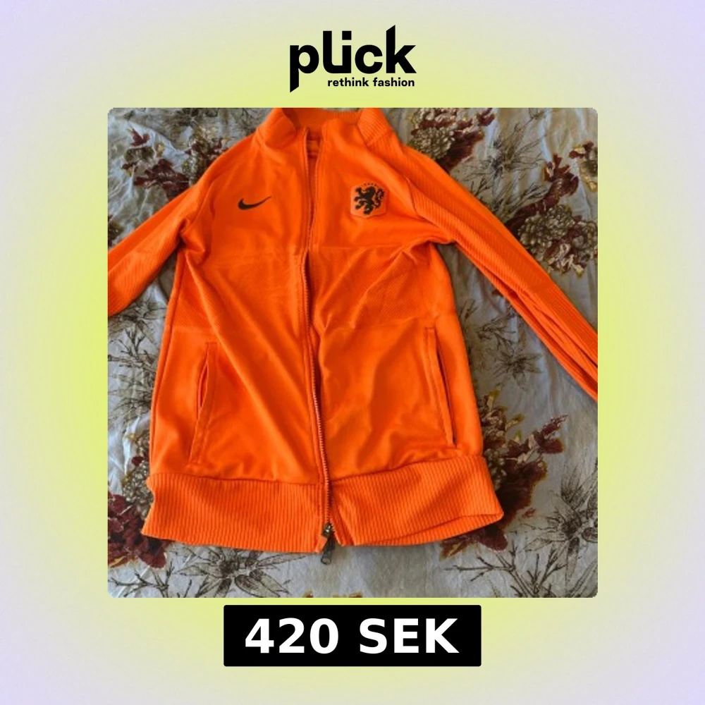 Snygg orange jacka från Nike med Nederländernas landslagslogga på bröstet. Jackan har hel dragkedja, ribbade muddar och två fickor framtill. Perfekt för dig som älskar fotboll och vill sticka ut med en sportig stil.