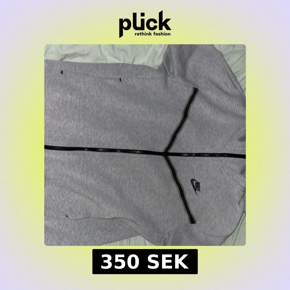 Säljer en stilren grå hoodie från Nike med dragkedja och svart logga på bröstet. Jackan har en huva och svarta detaljer längs dragkedjan och ärmarna. Perfekt för en sportig look eller avslappnade dagar.
