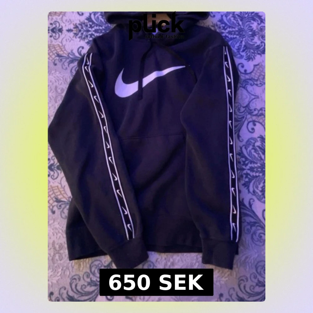 Svart hoodie från Nike med stor vit logga på bröstet och vita detaljer längs ärmarna. Klassisk huva med dragsko och magficka framtill. Perfekt för en sportig och avslappnad stil.