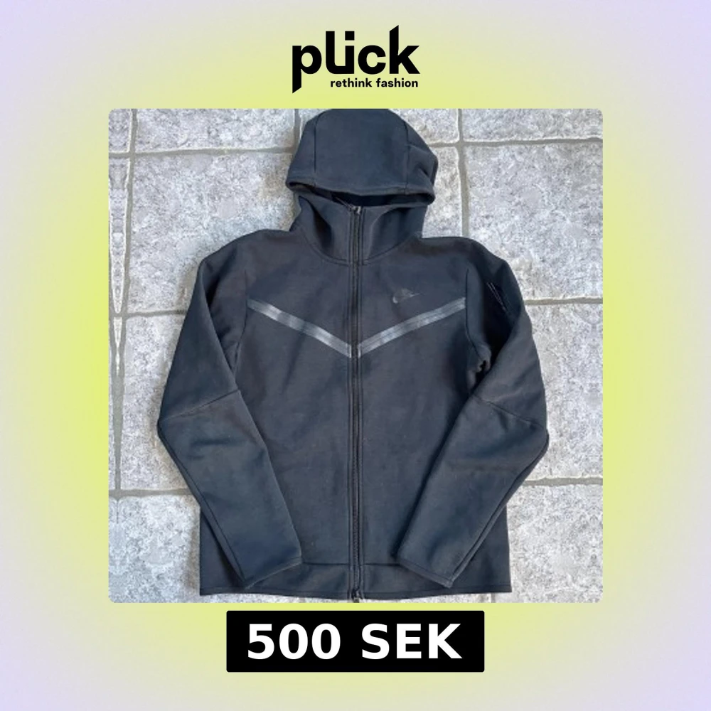 Svart Nike Tech Fleece hoodie med hel dragkedja och huva. Snyggt V-format reflexband på bröstet och diskret Nike-logga. Mjuk och sportig design med ficka på ärmen. Perfekt för en streetwear-look.