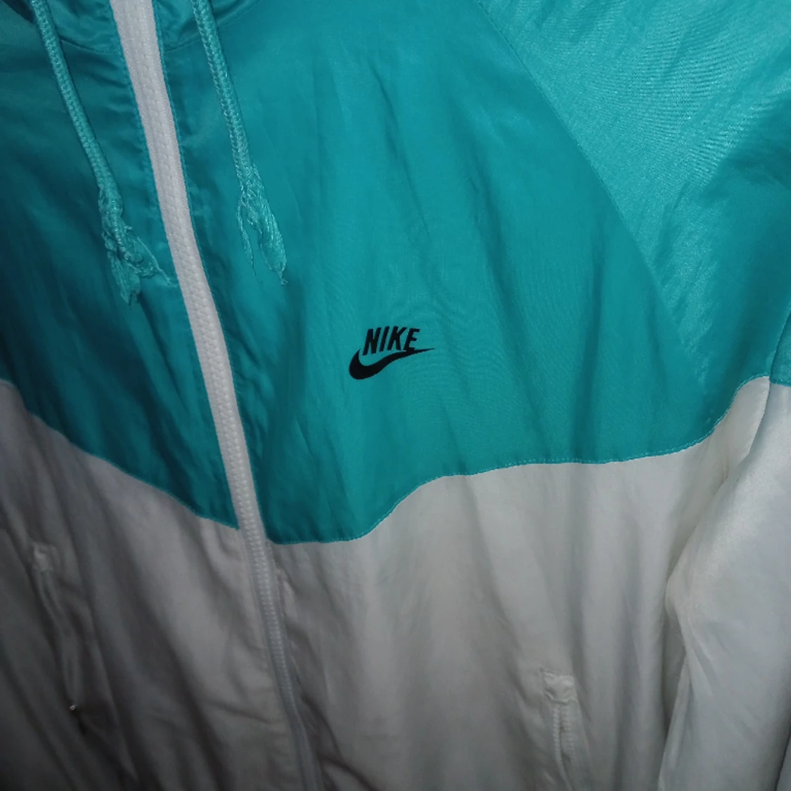 Äkta Nike tunt material,storlek M. sparsamt använd. vit/turkos