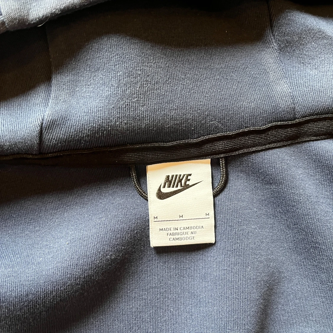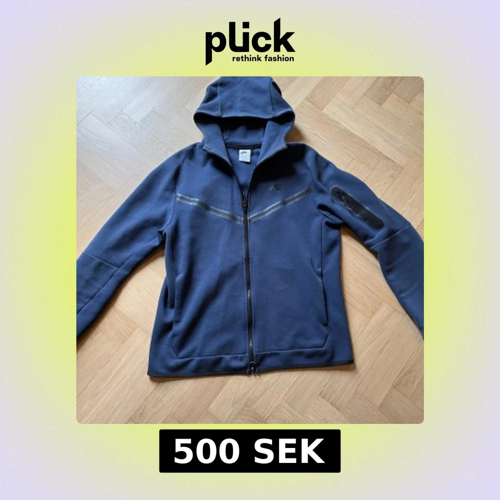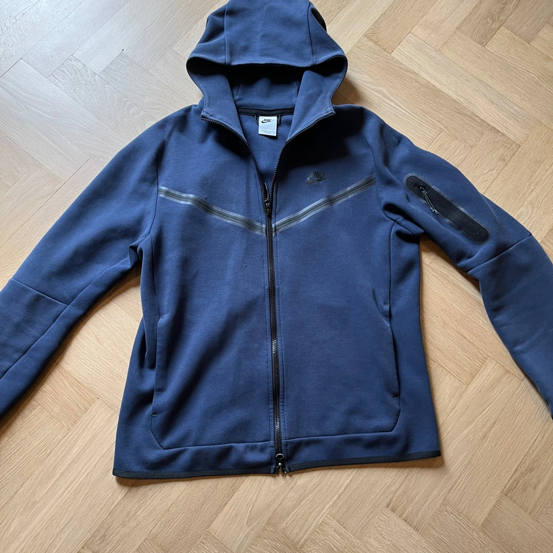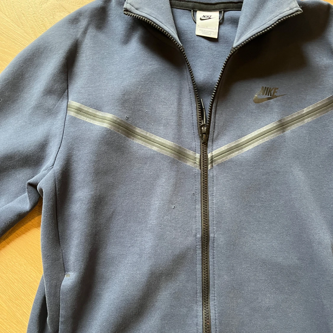 Nike tech fleece skick 7/10🤩Finns ett litet hål i fickan som är så litet att man inte märker av det om man inte känner nogrant efter det. Finns även några pytte små hål vid bröstet som man inte ens ser med blåtta ögat men kollar man noga ser man dem nog se bild 2.