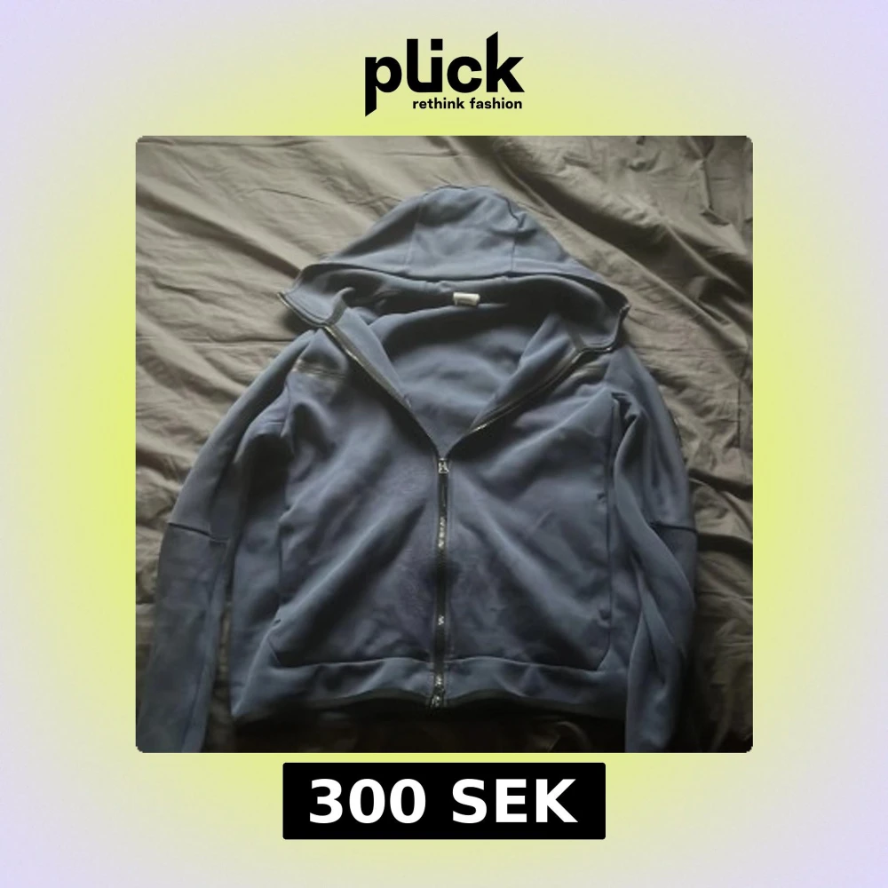 Säljer en blå huvtröja med dragkedja. Enkel och stilren design som passar till det mesta. Ny pris runt 1000kr pris kan förhandlas