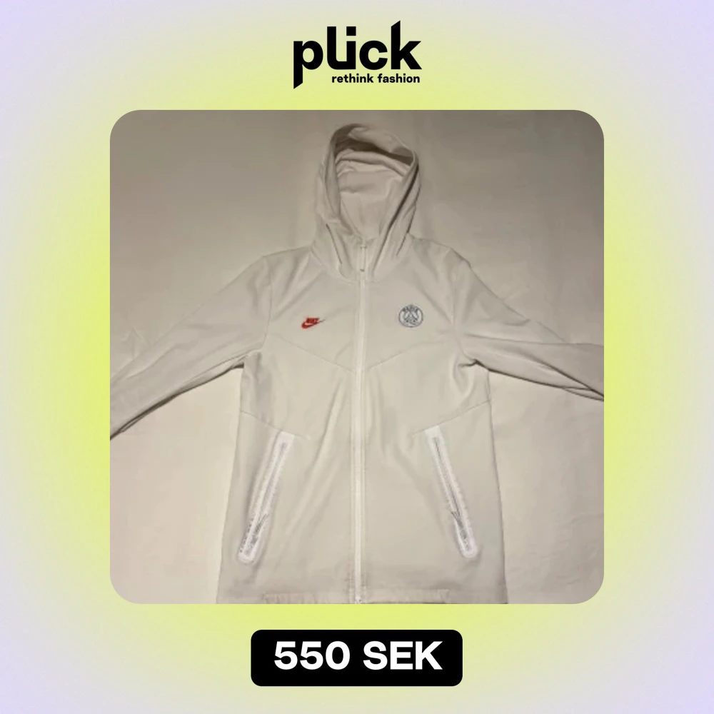 PSG zip-up hoodie i bra skick. Inga hål men det finns ett par fläckar på insidan. Storlek S men relativt baggy fit så skulle säga att det passar M också.