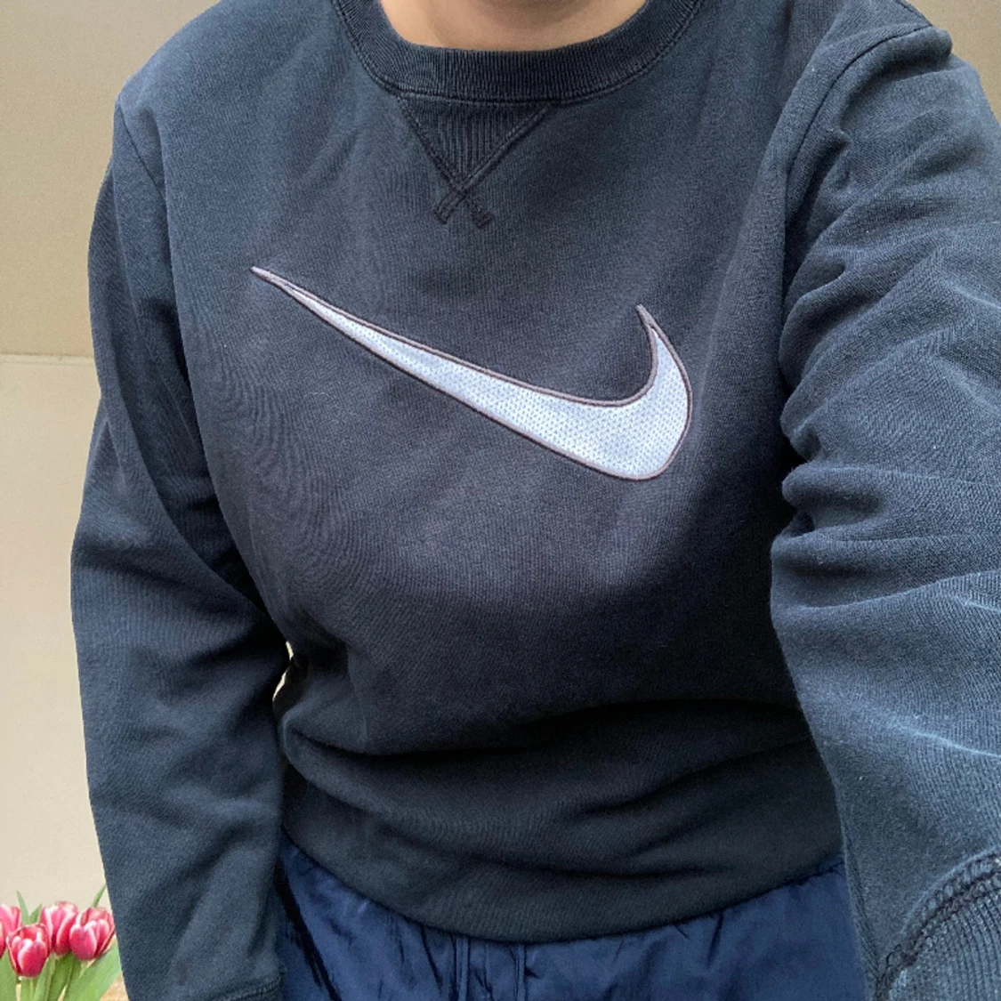 Så fin mörkblå tröja från Nike! Köpt second hand, strl XS-M beroende på hur man vill att den ska sitta