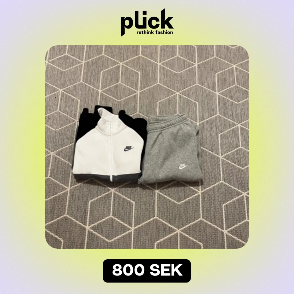 Säljer en grå nike tracksuit som aldrig har använts då den är för stor. Tröjans storlek är M och mjukisbyxorna är L. Kontakta mig ifall du skulle ville köpa bara tröjan eller bara byxorna! Fri frakt📦