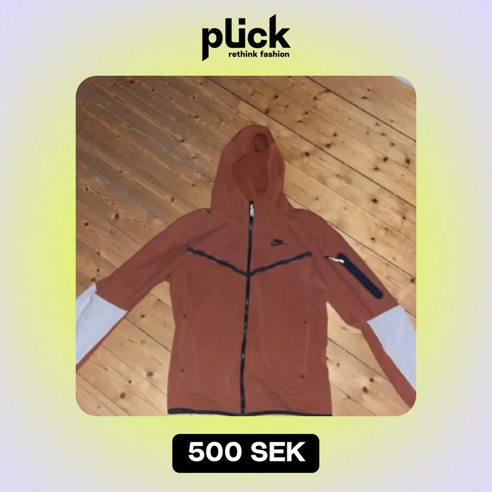 Orange/Beigevit Nike Tech Fleece. Färgen är som andra bilden, första har dåligt ljus. Den är koppar / orange. Storlek S i Nike tech, passar M eftersom Nike Techs är större. Pris är inte hugget i sten, kan definitivt gå ner!