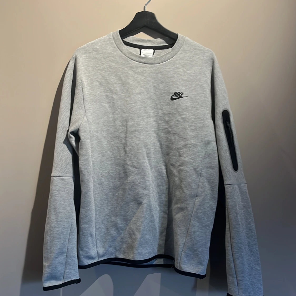 Snygg grå sweatshirt från Nike med svart logga på bröstet och cool detalj med svart dragkedja på ärmen. Tröjan har rund halsringning och långa ärmar. Perfekt för dig som gillar sportig och clean stil. Helt oanvänd nypris 1099