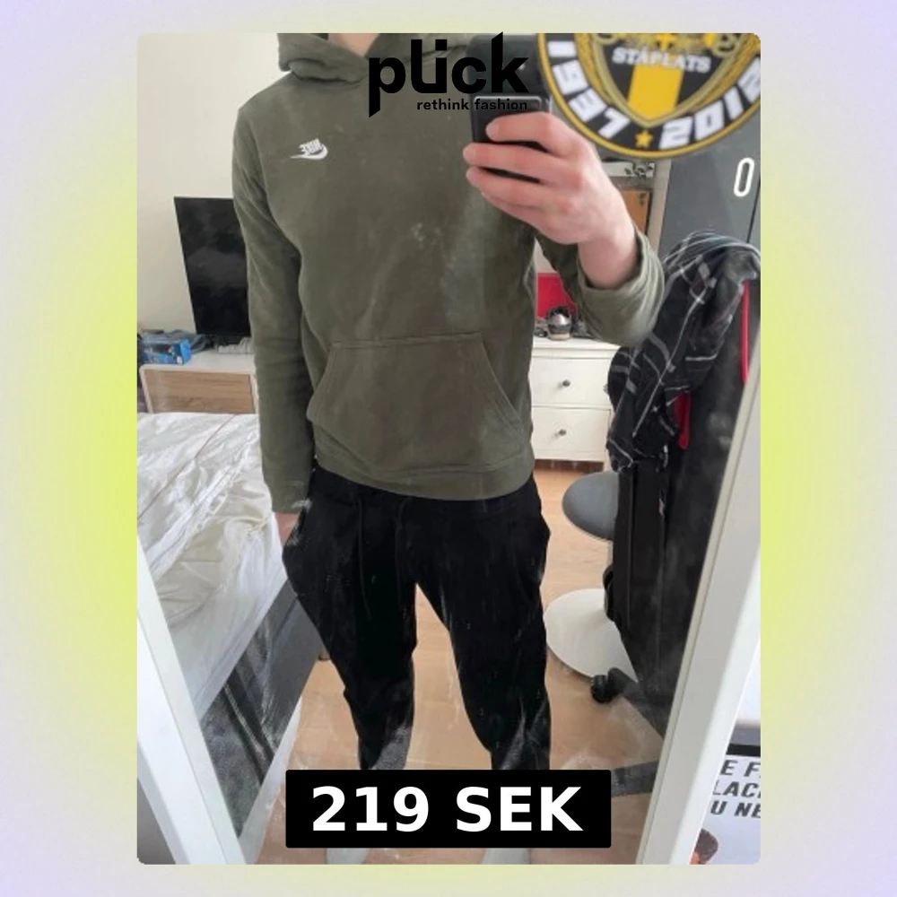 Säljer en olivgrön hoodie från Nike med klassisk vit logga på bröstet. Hoodien har en stor magficka och justerbar huva. Tillverkad i mjukt bomullsmaterial och har ribbade muddar vid ärmslut och nederkant. Perfekt för en avslappnad och sportig stil.