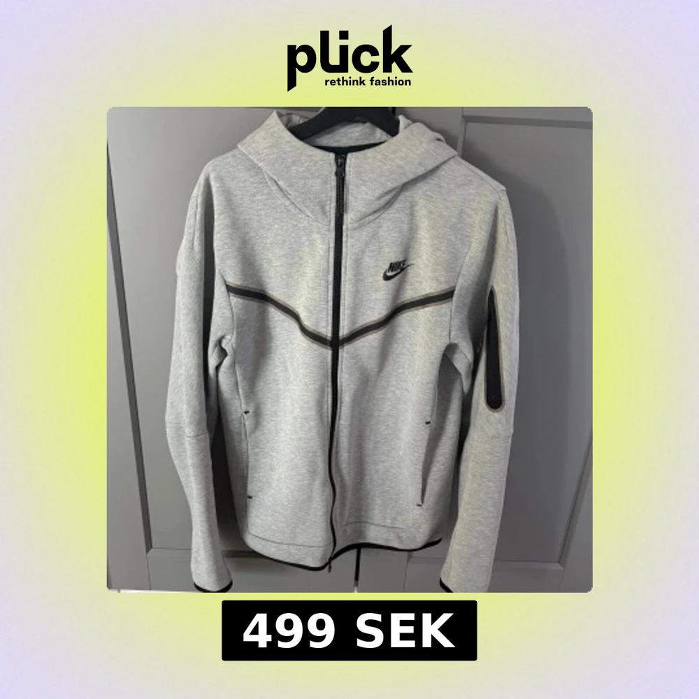Säljer min gråa nike tech hoodie som är i bra skick och utan några större defekter förutom det lilla man ser på bilden som knappt syns i verkligheten.