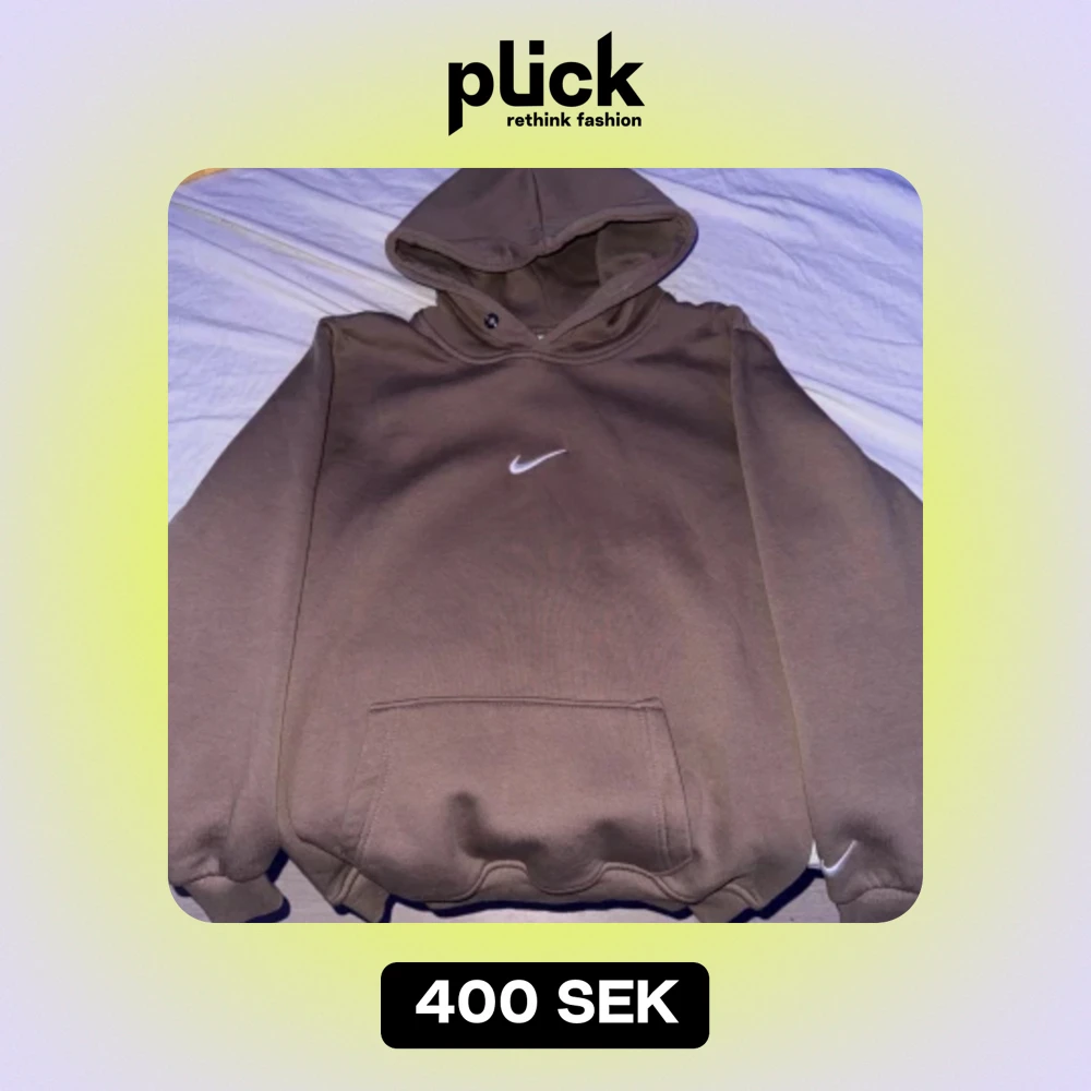 Säljer en snygg brun hoodie från Nike i storlek S. Den har en klassisk design med en liten vit Nike-logga på bröstet och ärmen. Hoodien är perfekt för höst och vinter med sin mysiga känsla och ribbade muddar vid ärmsluten. Perfekt för både träning och vardag!