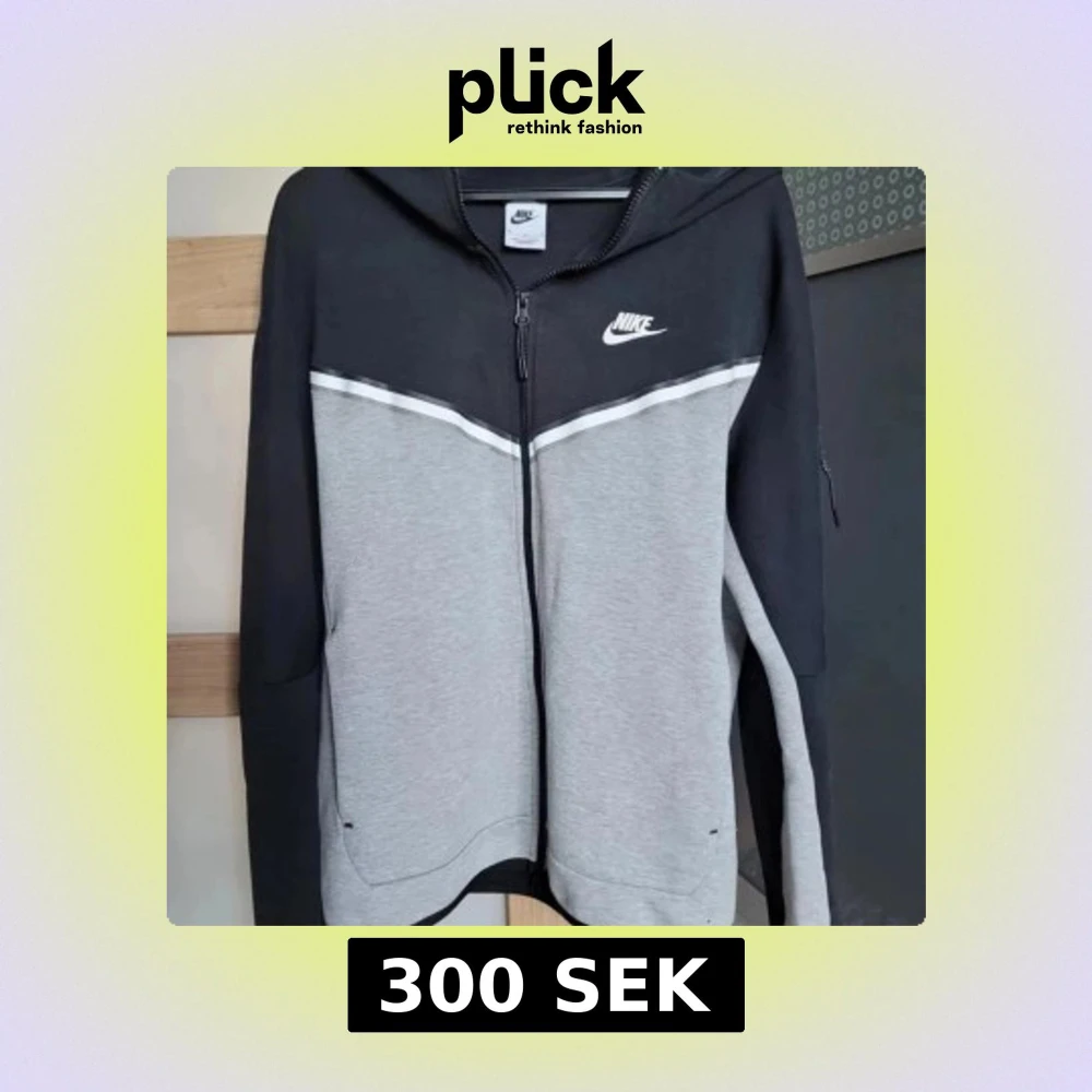 Nike hoodie i svart och ljusgrått med vit logga på bröstet. Tröjan har huva, hel dragkedja och långärmade ärmar. Snyggt designad med vit linje över bröstet och praktiska fickor. Perfekt för chill eller träning.