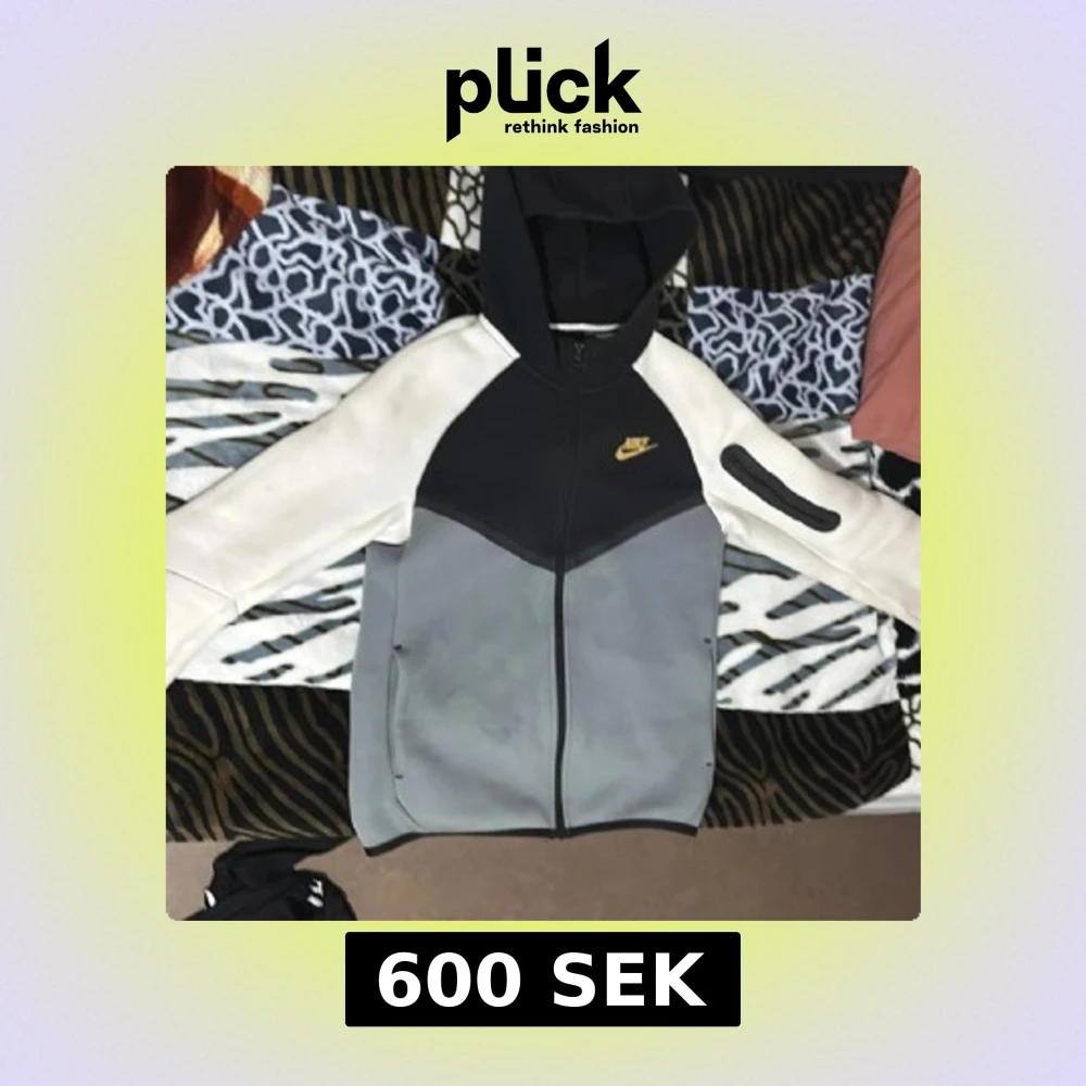 Skicka till mig om ni vill ha mer bilder Nike jacka med huva i svart, grått och vitt. Jackan har hel dragkedja framtill, fickor på sidorna och en extra ficka med dragkedja på ärmen. Guldigt Nike-märke på bröstet. Perfekt för en sportig och avslappnad stil.