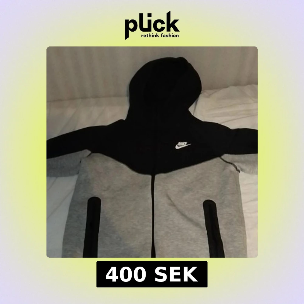 Nike hoodiejacka i grått och svart med dragkedja framtill och två svarta fickor. Jackan har huva och klassisk Nike-logga på bröstet. Perfekt för en sportig och avslappnad stil.