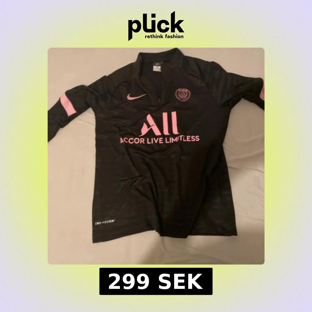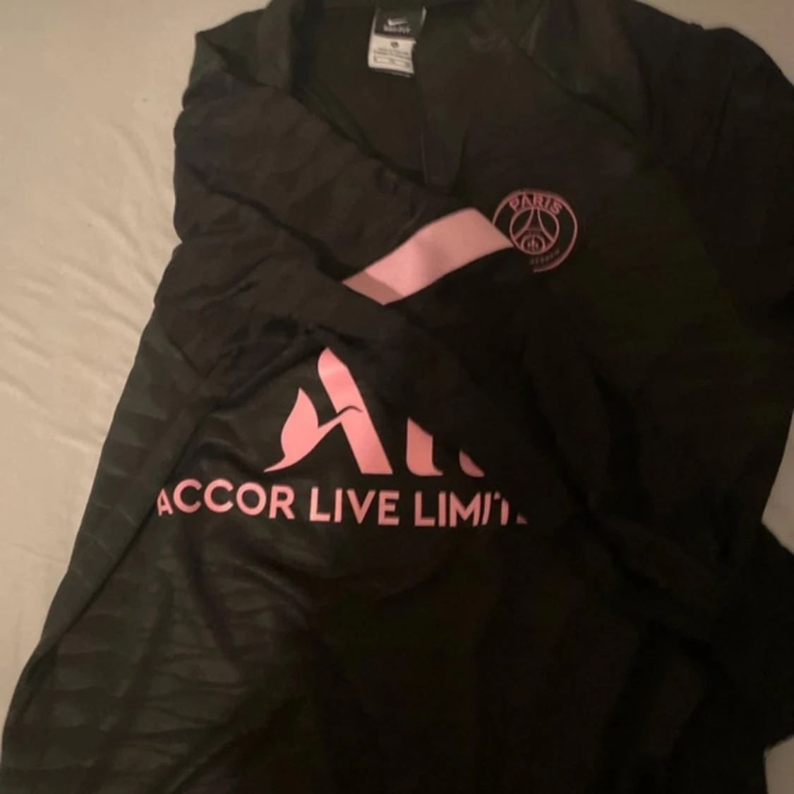 Svart långärmad PSG fotbollströja från Nike med rosa detaljer och klubbmärke på bröstet. Tröjan har Dri-FIT-material som andas och rosa Nike-logga samt sponsortryck på framsidan. Perfekt för dig som älskar Paris Saint-Germain och snygg sportstil.