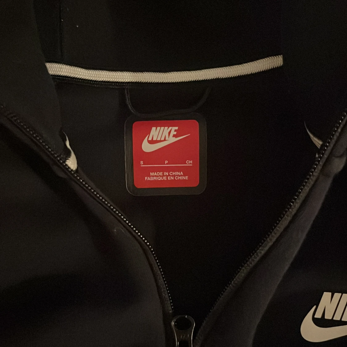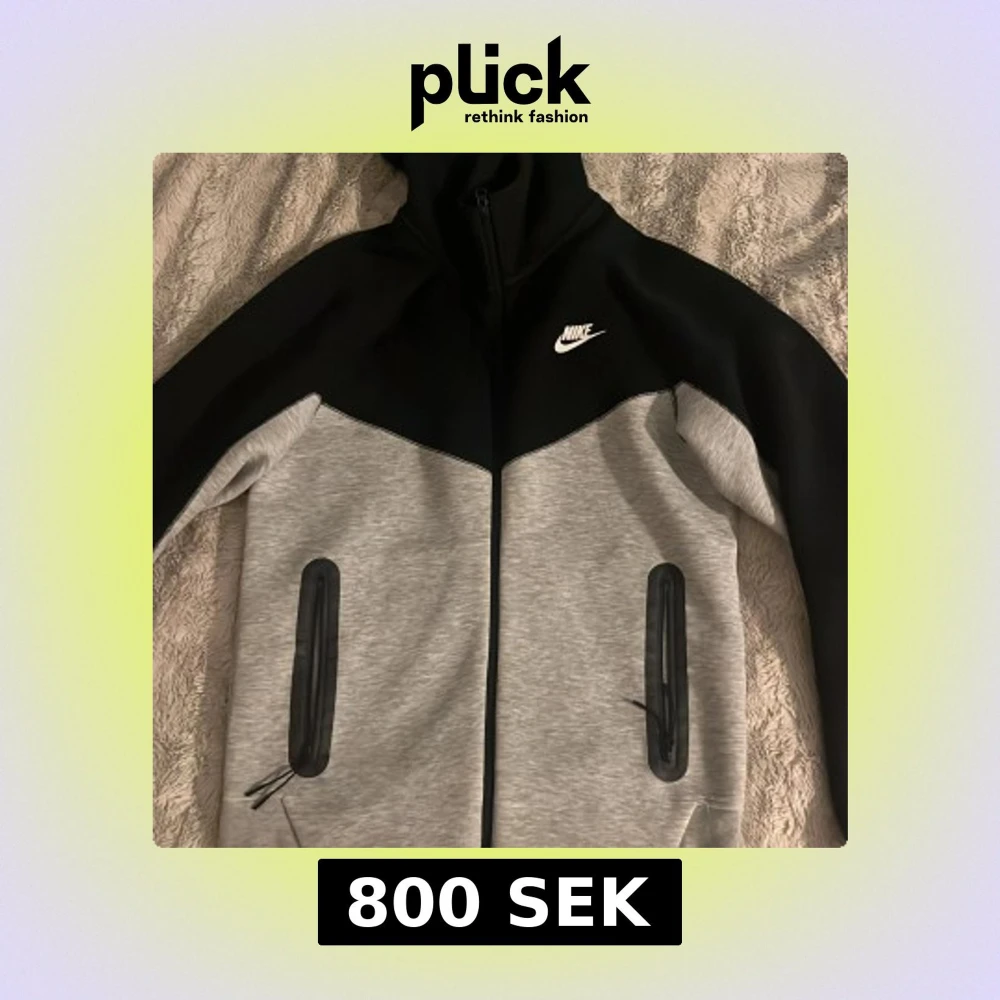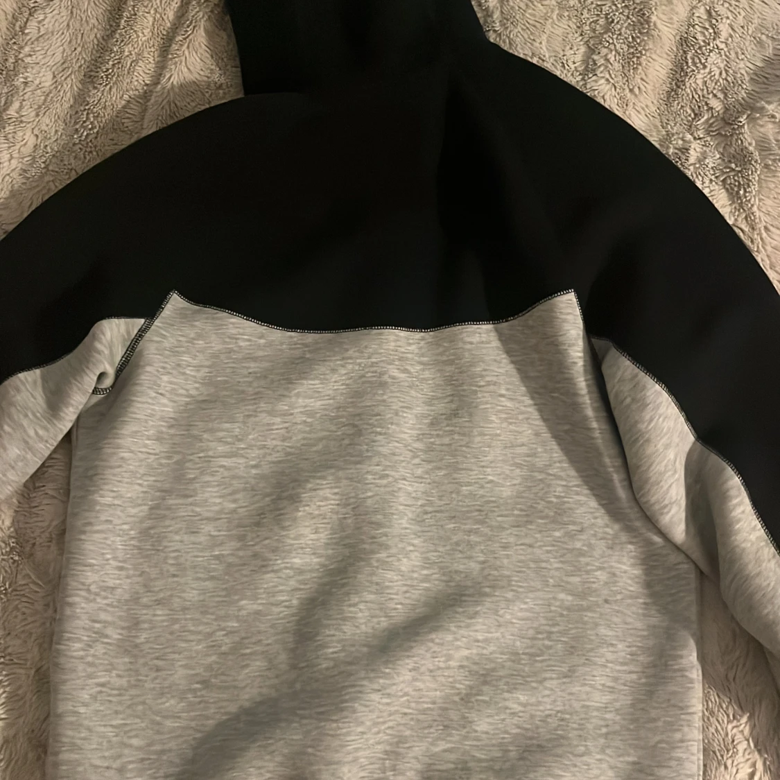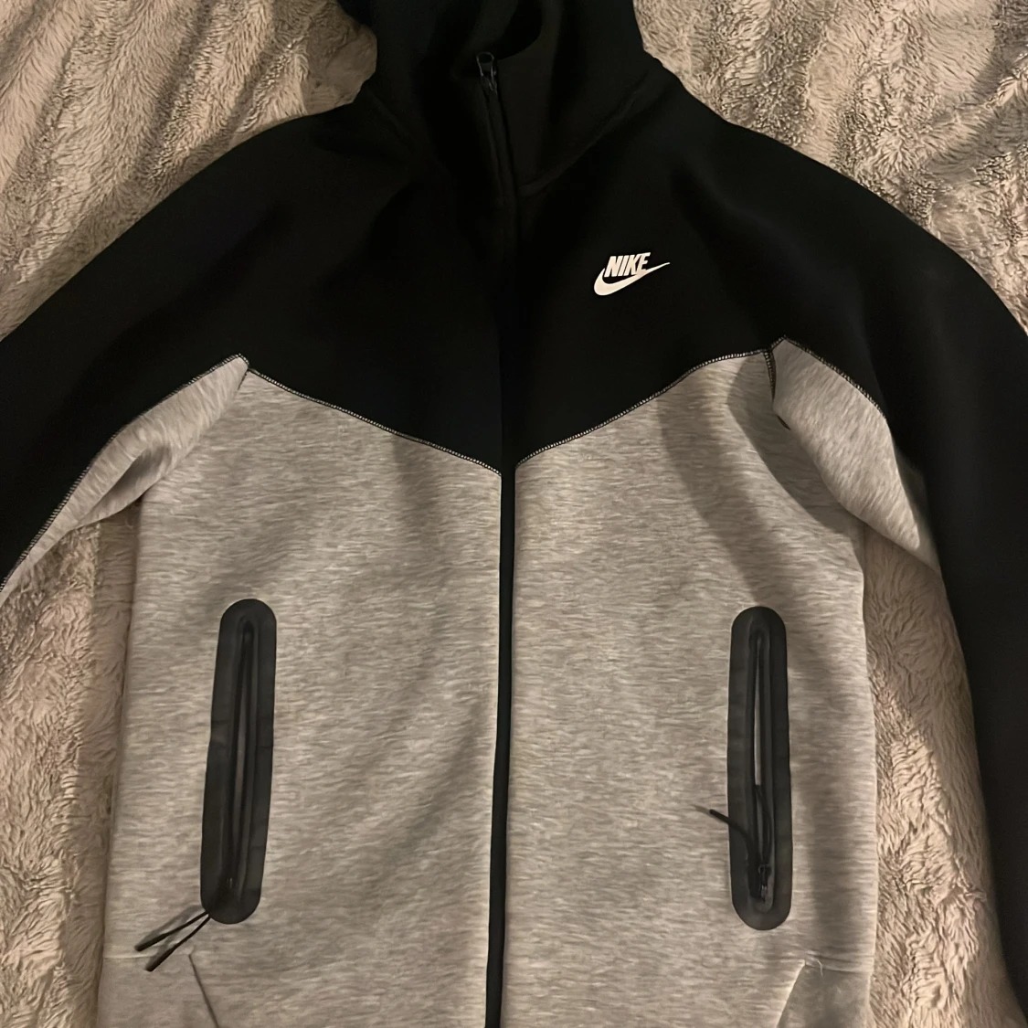 Nike vindjacka i svart och ljusgrått med huva och hel dragkedja. Jackan har två fickor med dragkedja framtill och en snygg kontrast mellan svart överdel och grå underdel. Perfekt för chill eller träning, klassisk Nike-logga på bröstet.