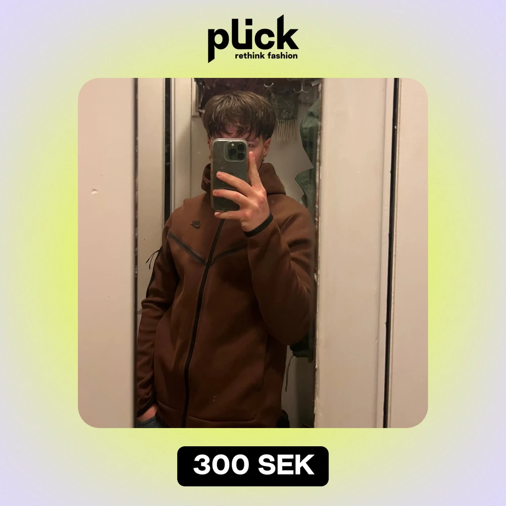Säljer en brun nike tech fleece i bra skick. Den har en dragkedja framtill och en liten Nike-logga på bröstet. Perfekt för höst och vår, med långa ärmar och en bekväm passform. Den är gjord av mjukt material och har en huva. Perfekt för både träning och vardag!