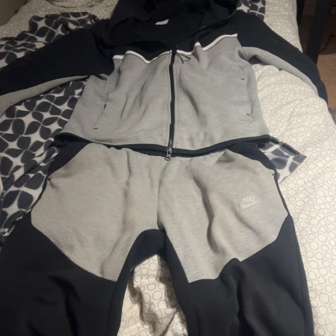 Säljer min Nike Tech Fleece. Mycket gott skick, knappt använd. Nypris ca 1250 mitt pris 649. Säljer också byxorna för 349kr. Byxorna är felfria förutom att färgen på loggan har blivit lite grå på kanten