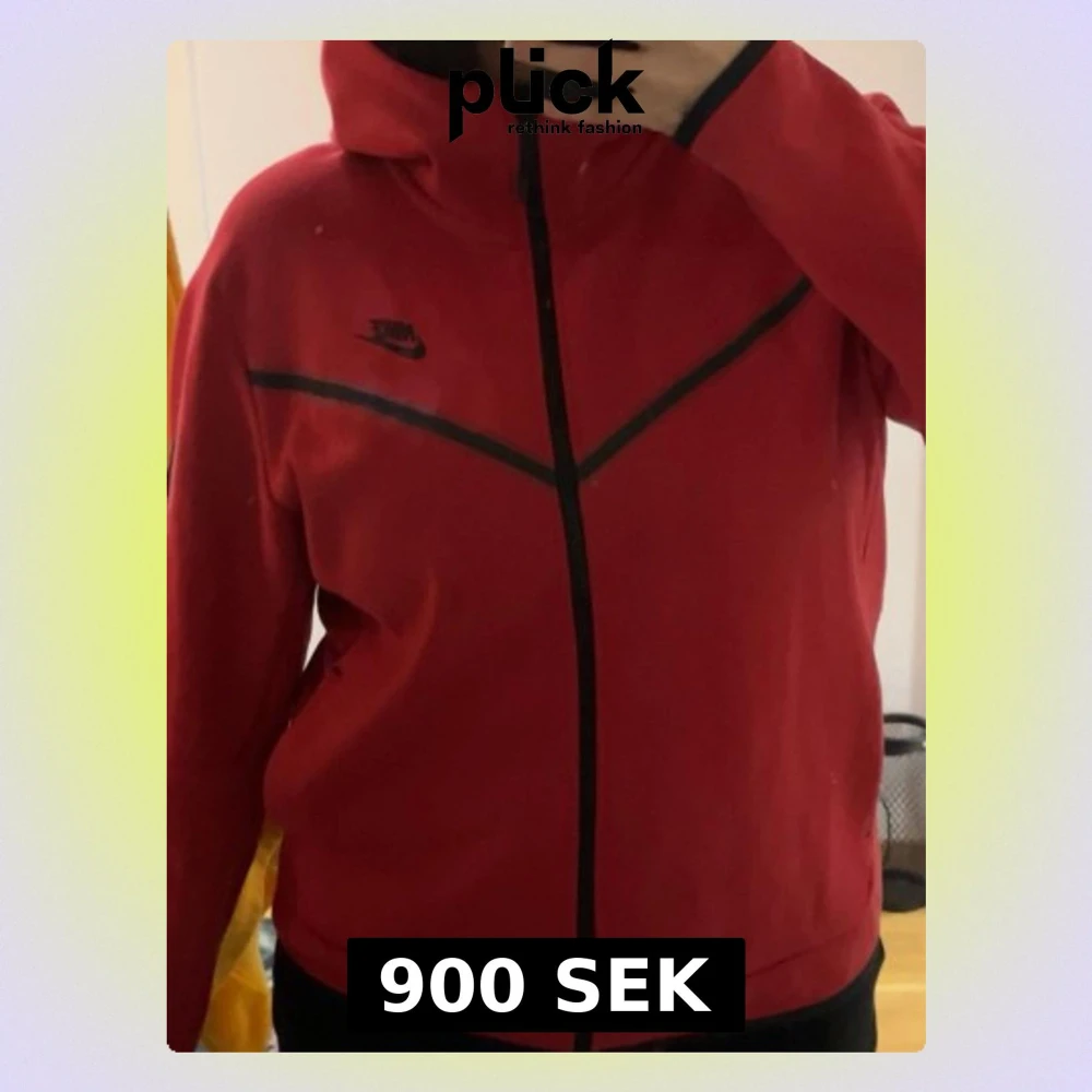En röd Nike tech fleece, använd ett par få antal gånger sedan bara haft den upphängd. Inga fel på den, i väldigt bra skick! Pris kan diskuteras!