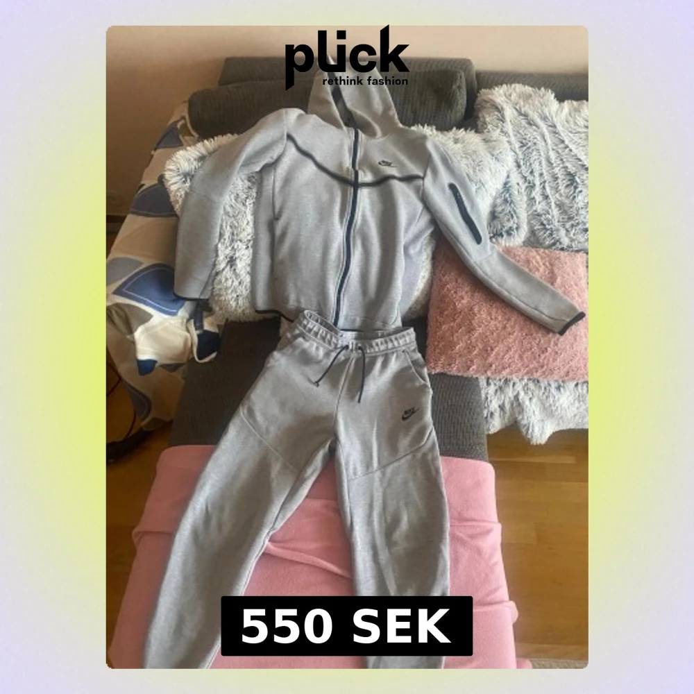Snygg grå hoodie från Nike med svart dragkedja och huva. Tröjan har lång ärm, en ficka med dragkedja på armen och svarta detaljer längs bröstet. Perfekt för chill eller träning, matcha med dina favoritjoggers för en clean look.