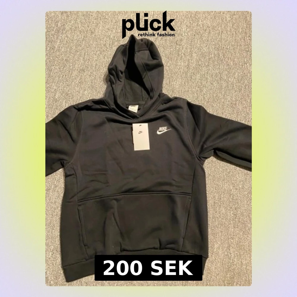 Svart hoodie från Nike i storlek XL, med klassisk vit Nike-logga på bröstet. Tröjan har huva, känguruficka och är tillverkad i mjukt material som känns skönt mot huden. Perfekt för chill dagar eller när du vill ha en clean streetstyle. Storlek 158-170.
