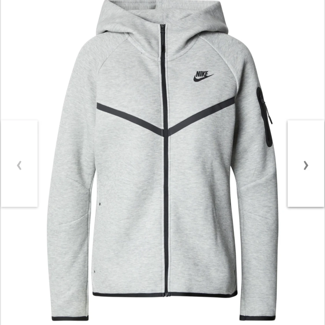 Snygg ljusgrå hoodie från Nike med hel dragkedja och svart logga på bröstet. Tröjan har huva, långa ärmar och svarta detaljer längs dragkedjan och på ärmen. Storlek 147-158, passar dig som bär storlek XS.