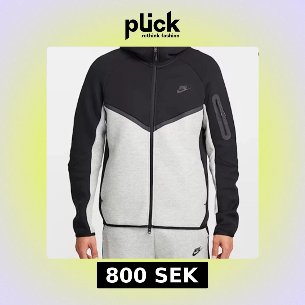 Nike Tech Fleece hoodie i svart och ljusgrått med dragkedja och huva. Storlek SX men passar S och M