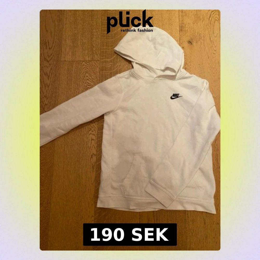 En vit hoodie med luva från Nike, storlek 164-170. Passar någon som vanligtvis har XS eller lite mindre.