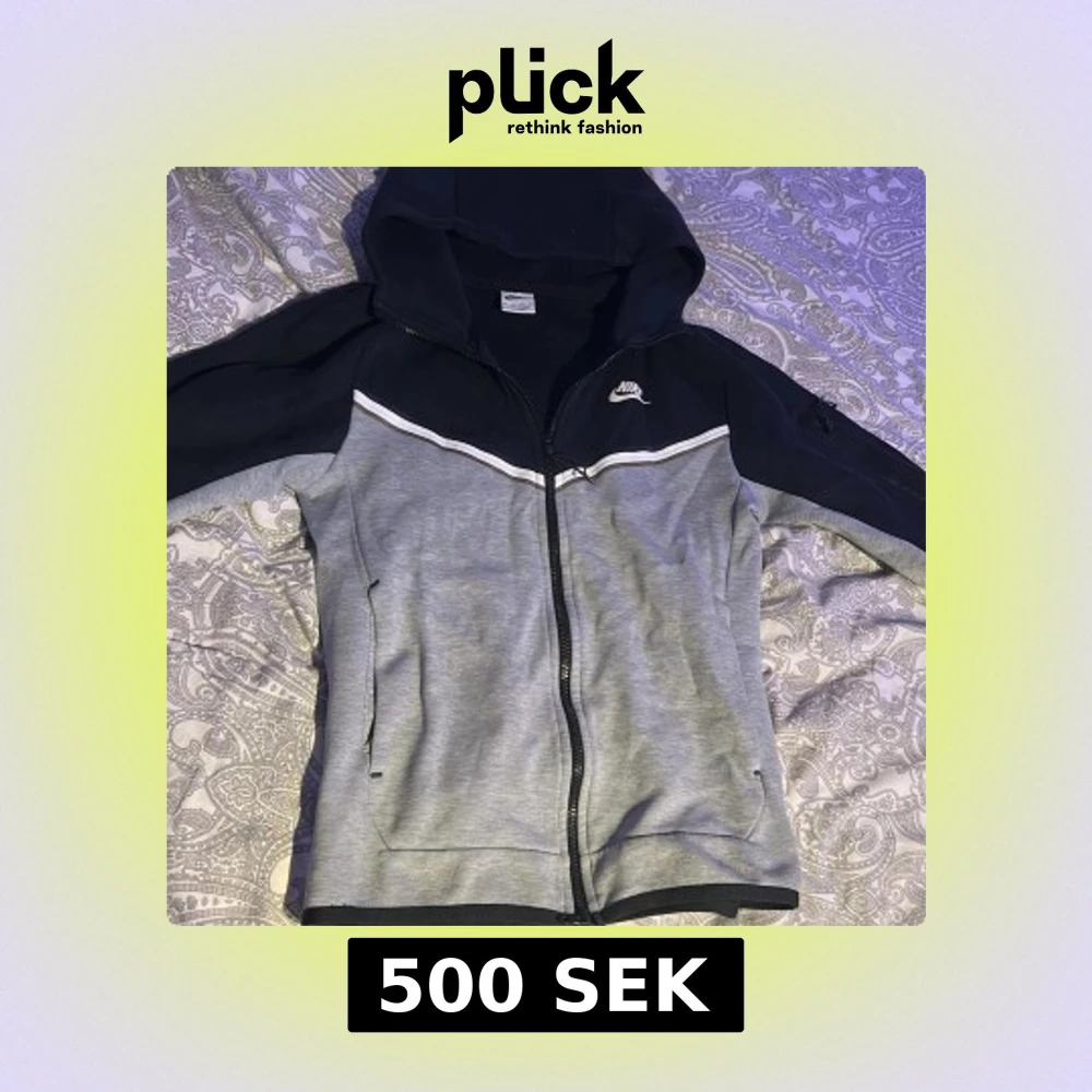 Nike hoodiejacka i svart och ljusgrått med hel dragkedja och huva. Jackan har vita detaljer över bröstet, två fickor och klassisk Nike-logga på vänster sida. Perfekt för chill eller sportig stil.