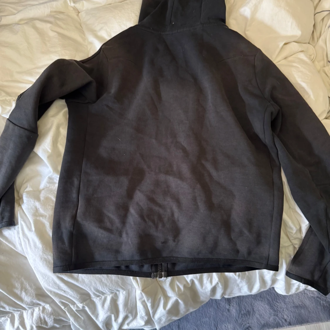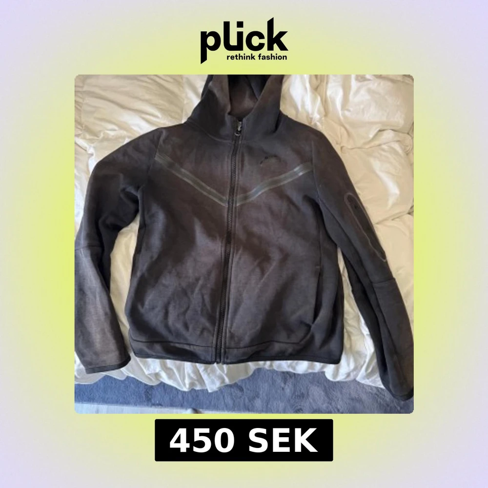 Säljer min svarta Nike tech storlek 160-170 säljes då jag har 2 st såklart är den äkta bilder kan fixas privat på den inga hål ett fel finns på fickan på armen men annars funkar den helt perfekt kan byta mot nån annan hoodie kan skickas men då står köpare för frakt.