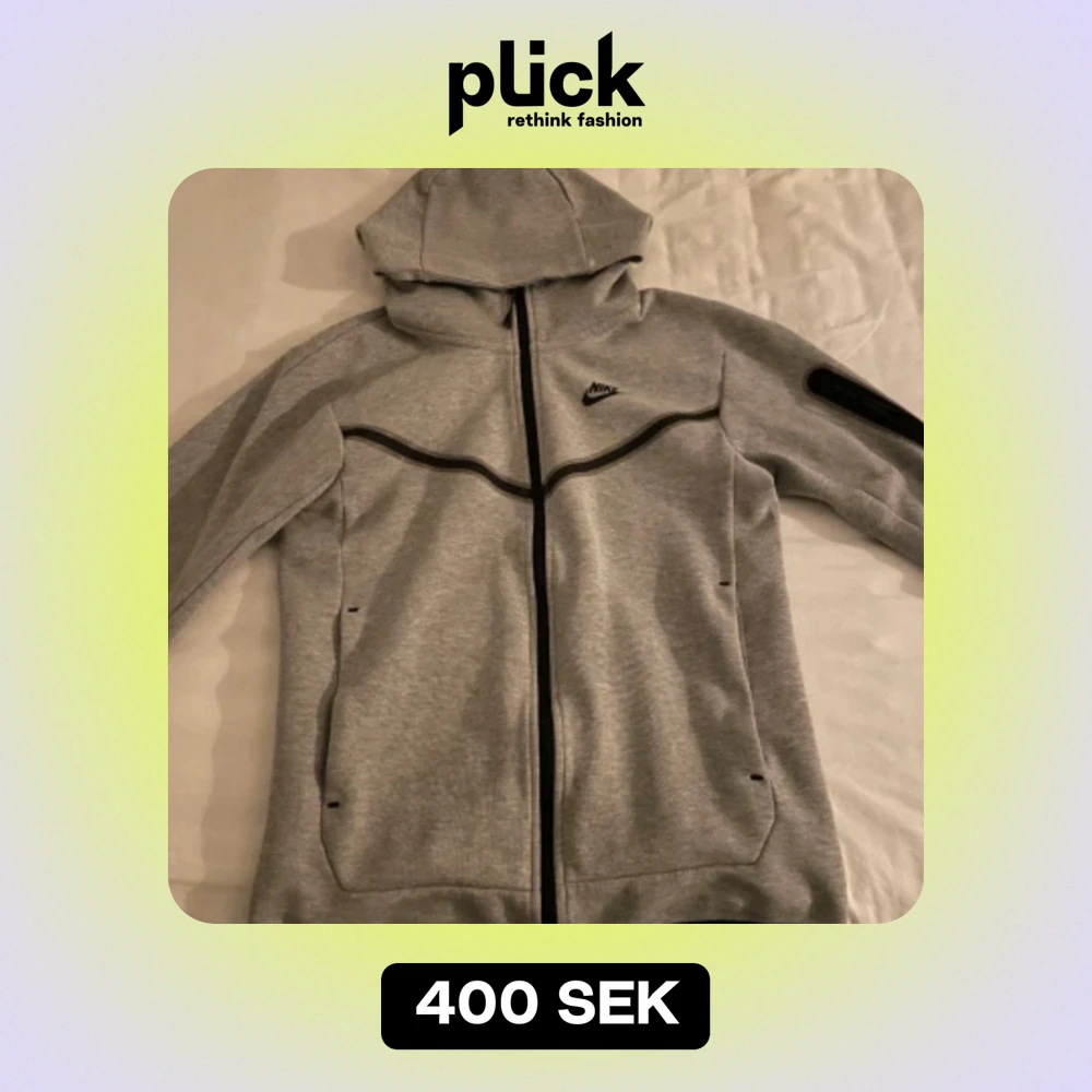Grå nike tech fleece köpt från 1200kr har ett litet hål som man knappt ser och den är lite syd annars bra skick 7/10 snabb affär  - Säljer en grå huvtröja från Nike med dragkedja och svart logotyp på bröstet. Tröjan har långa ärmar och en praktisk huva. Perfekt för en avslappnad stil.