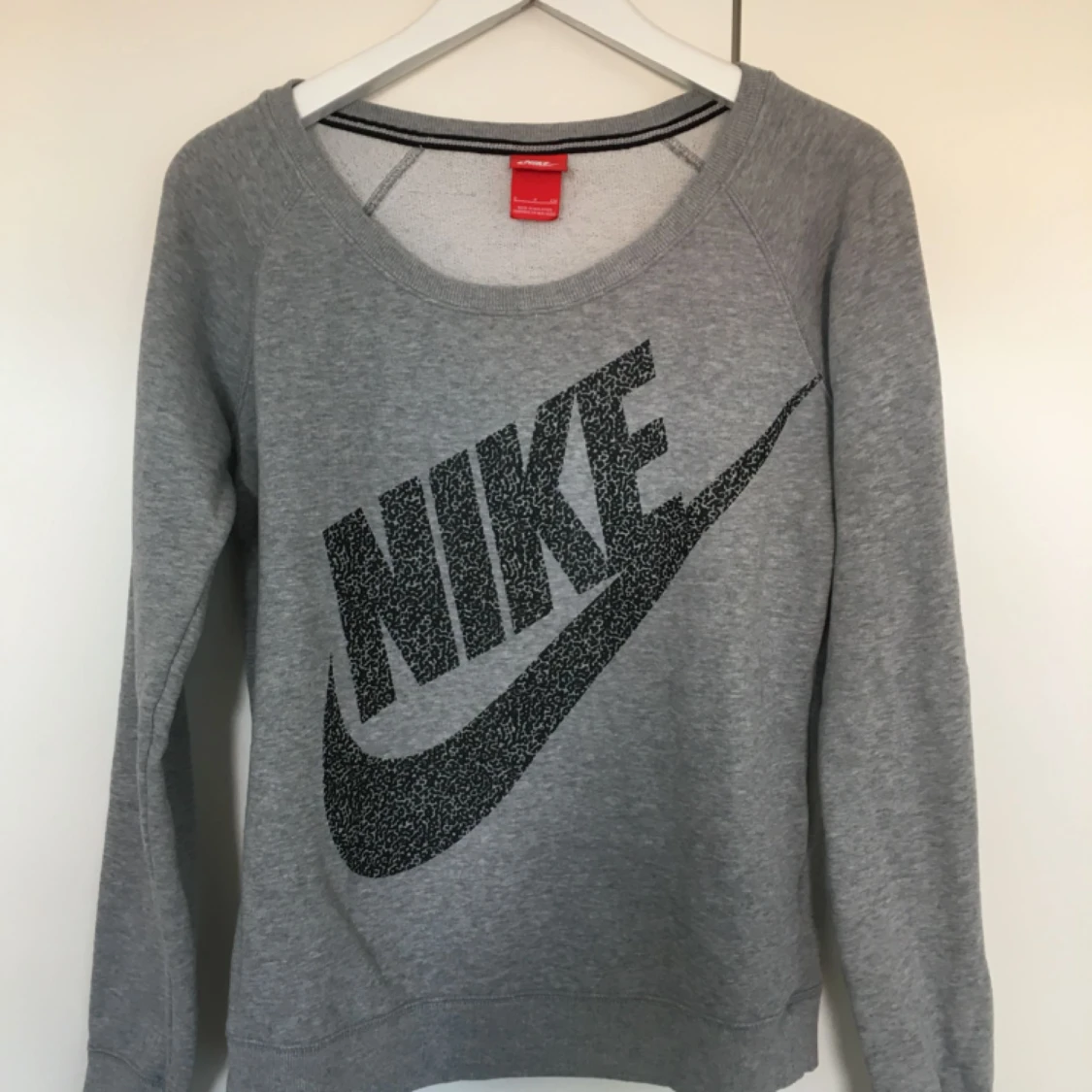 Grå sweatshirt från Nike storlek S, passar en M också. Använd men fint skick! Självklart äkta.