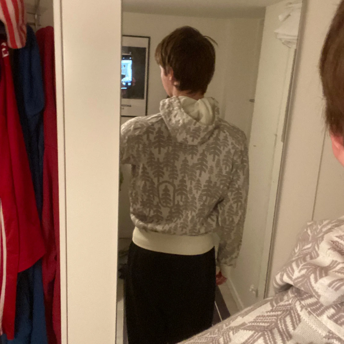 Asfet mönstrad nike hoodie med ärmar som man kan sätta tummarna i, typ som vantar, samt som man kan ha som ryggsäck!! Se bild 2. Kan även lägga saker i den då, så jävla najs! 🙌😊