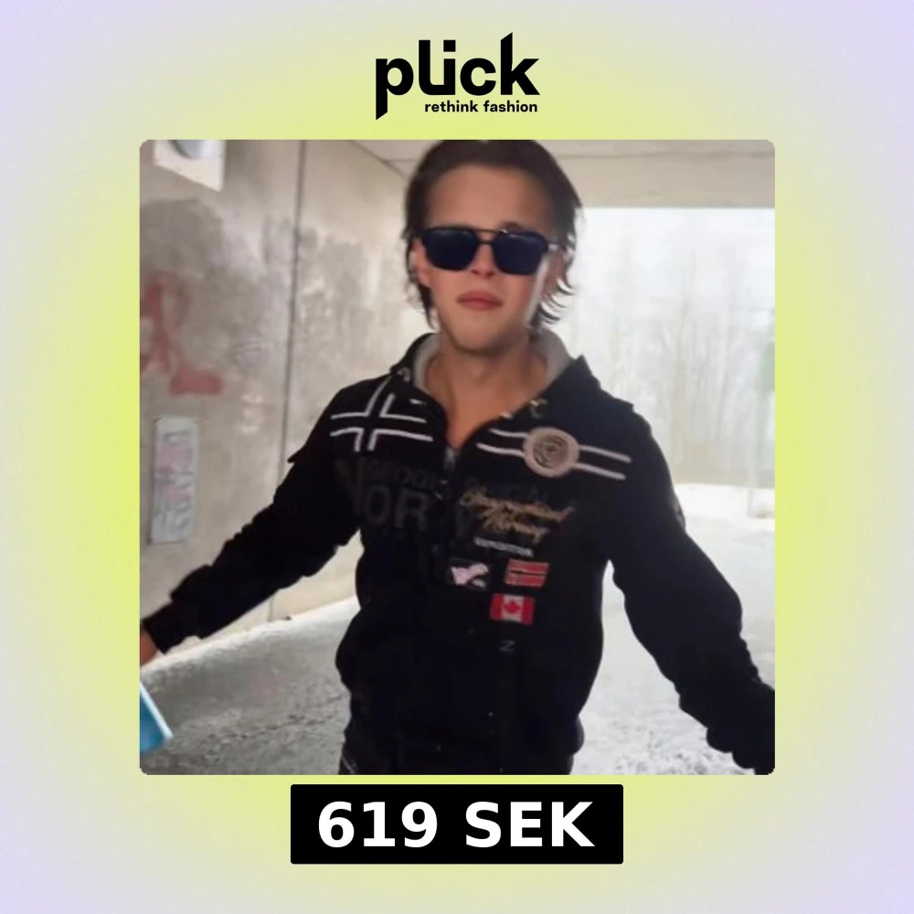 Svart hoodiejacka med dragkedja från Geographical Norway. Jackan har broderade loggor och flaggor på bröstet och ärmen, samt två fickor framtill. Huva med dragsko och vita detaljer på axlar och bröst.