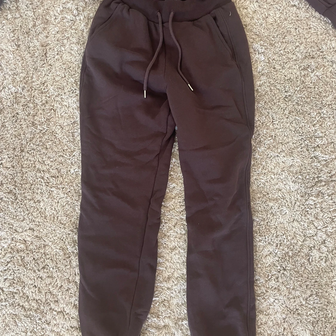 Brunt mjukis set frĂ„n Lindex i storlek xs i byxorna och s i hoodien!đ aldrig anvĂ€nda, nyskick!