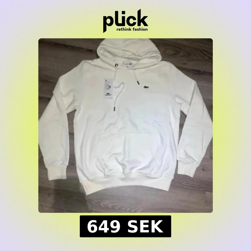Säljer denna stilrena, nya och riktigt snygga vita Lacoste hoodien, passar perfekt till allt, dock är den liten i storleken, står XL men passar (M-L), skriv gärna vid intresse och för mer information!